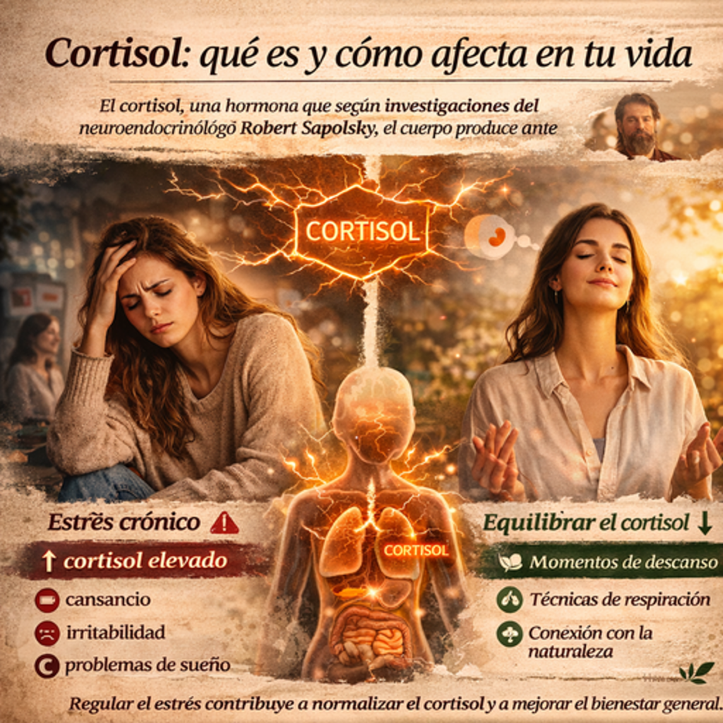 El cortisol es una hormona que produce el cuerpo en situaciones de estrés y que cumple una función clave: ayudarte a responder ante demandas o peligros. En niveles adecuados es necesaria, ya que regula la energía, el metabolismo y el estado de alerta. El problema aparece cuando el estrés se vuelve constante y el cortisol […]